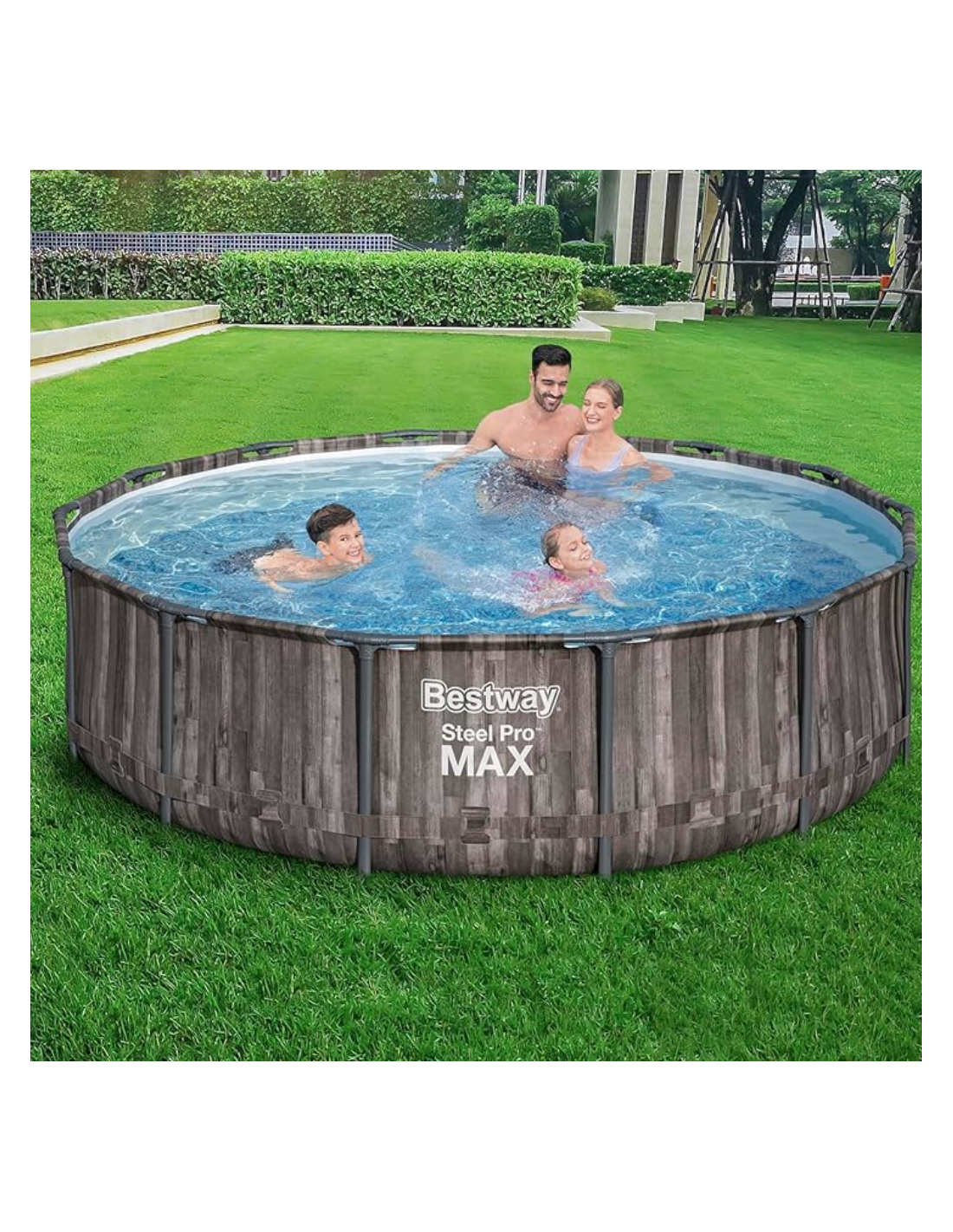 La Bestway Steel Pro Max Piscina 5614X è una piscina fuori terra progettata per uso domestico stagionale con una struttura portante in acciaio con trattamento anticorrosione che assicura resistenza alle intemperie e stabilità durante tutta la stagione estiva.