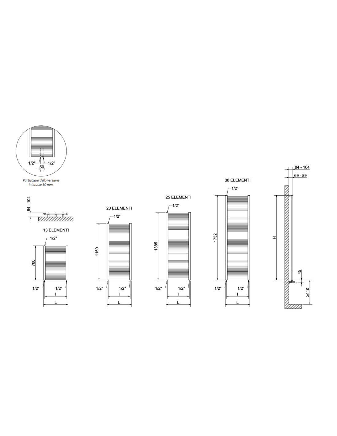 Resa termica adeguata ad ambienti di piccole e medie dimensioni, variabile in base alla larghezza selezionata e alle condizioni dell’impianto.
